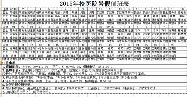 2015年校医院暑假值班表