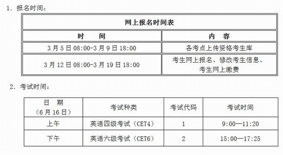 2.修完大学英语四级课程可报考CET4,修完大学英语六级课程且CET4达到425分的在校生才能报考CET6。