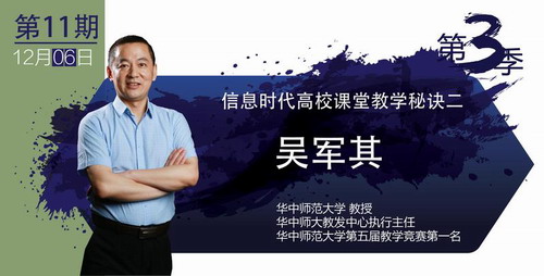 直播时间2018年12月6日(周四)15:00-16:00, 观看途径详见《关于观看第三季超星教师发展直播讲堂的通知》http://www.jju.edu.cn/info/1044/66337.htm。(首次观看“直播讲堂”的教师,需先通过手机端登陆,选择“第三季超星教师发展直播讲堂”,之后手机端、电脑端均可观看。)