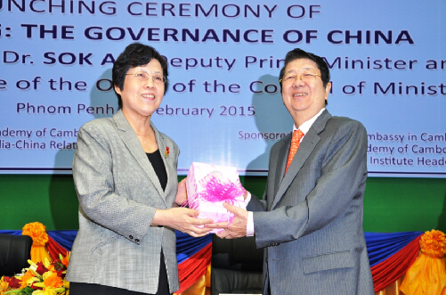 王家行政学院省长培训班学员财政部现任司长恒皮投(Heng Pitou )、国公省现任司令官云明(Yun Min)表示,在王家行政学院2015年一年学习期间会好好研读《习近平谈治国理政》一书,更好地了解中国在深化改革方面的重大举措,希望在以后管理一个省的时候能有所借鉴。