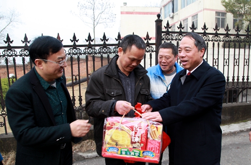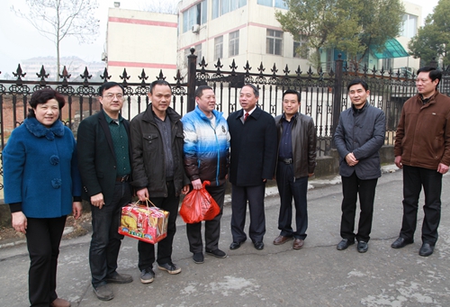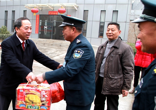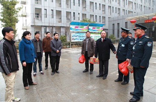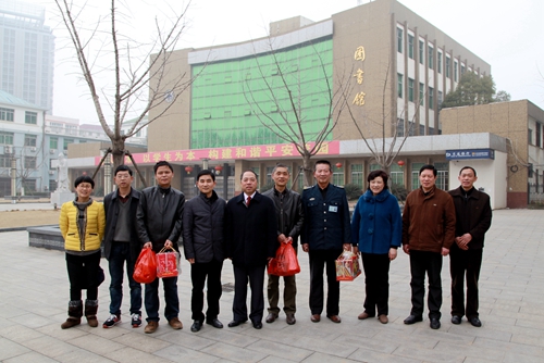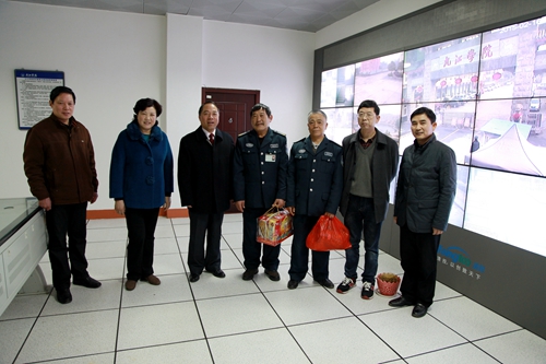 在主校区,甘筱青对水电科和保卫处的同志说,“感谢你们节日期间仍坚守工作岗位,为校园安全保驾护航,让教职工及一些在校学生度过一个欢乐祥和的春节。我代表学校向大家表示问候,祝你们春节快乐、合家幸福!”并向他们送上节日慰问品。