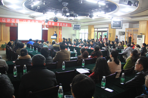 上午8时,临床医学院/附属医院在九楼会议室举行医院评审现场评价反馈问题整改汇报会。省卫计委评审专家组成员、九江学院副校长杨焱林、九江市卫生局调研员吴磊军出席会议。九江市卫生局领导、临床医学院/附属医院领导班子,中层以上干部及职工代表约120余人参加了会议。省卫计委医政医管处梁斌副处长主持会议。