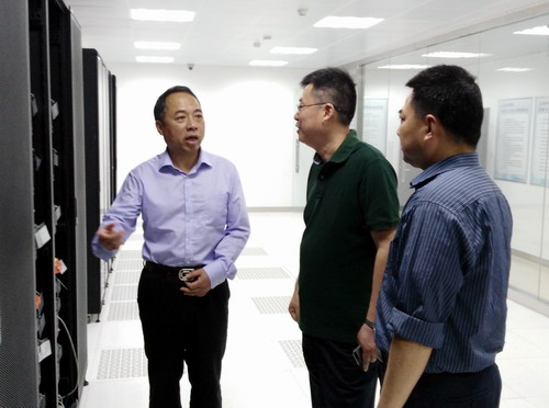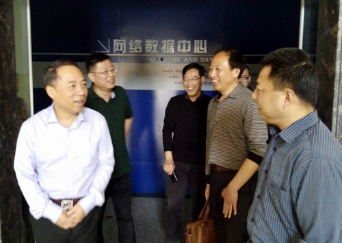 随后,甘校长参观了校园网网络机房、一卡通机房和数据中心机房,听取了机房相关工作介绍。当工作人员指着6台高性能服务器向甘校长介绍说,它们可以虚拟成200多台虚拟机,既方便了管理,更为学校节省了大量经费时,甘校长要求大家一定要好好使用好这些宝贝,加强应用开发,使设备的价值更好地体现出来。