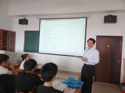 4月30日上午,校党委书记郑翔来到厚德楼504教室,与信息学院A1411班的同学们一起听取了信息学院詹芹副教授讲授的《汇编语言程序设计》课程。教务处处长马明亮一同听课。