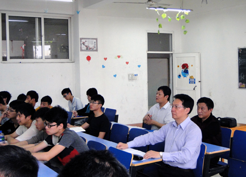 课后,郑书记和赵大华老师以及学生进行了交流。郑书记说赵大华老师的《工程力学》课程讲得好,把力学知识和计算方法结合起来讲,融会贯通;并且赵老师板书多,以小见大,反映了赵老师工作认真。最后,郑书记对学生说,工程力学是一门理论性很强的课程,是土木类专业的基础课。力学没学好,将来的工程中是会出大问题的。郑书记勉励同学们努力学习,啃掉力学这个硬骨头,将来成为国家建设的栋梁。郑书记很关心学院教学条件,对改进教学设施,提高教学效果提出了要求。