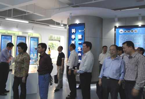 5月18日,我校校庆系列活动之一、九江学院科研及专利成果展厅正式开放。下午三点,校领导郑翔、甘筱青、吴桃娥、纪岗昌、王万山、陶春元、杨焱林、魏立平、杨耀防等来到展厅,兴致勃勃地参观了科研及专利展。