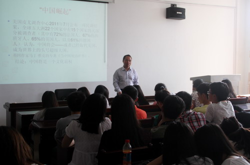 甘校长从文化发展道路的历史选择、社会主义文化与中西文化的价值对话、文化发展的三大战略任务、九江学院的文化育人等方面进行深入浅出的讲解。从古到今,从过去到未来,从西方文化的优势到我国文化的 “中国崛起”,全面地对中国特色社会主义文化发展道路进行阐述。甘校长结合自己的亲身经历和研究内容,给学生们上了一堂生动的思想教育课,整场讲座持续两个半小时,讲座精彩纷呈,妙趣横生,深受学生的喜爱。
