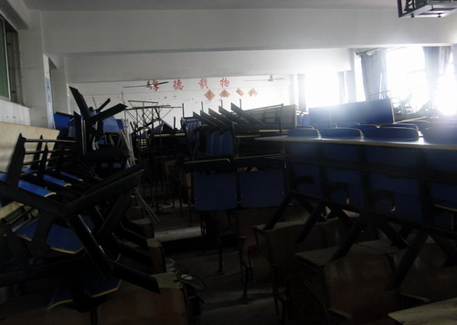 在庐峰校区一教楼,杨副校长一行从一楼到八楼每层楼都进行了实地察看,发现有些教室里堆放了许多报废的旧桌椅和实验设备时,杨副校长要求临床医学院会同医学部,尽快将这些物品搬离。要求基建处对各楼层内外墙进行粉刷,更新窗帘,对有些破旧的门进行更换,确保整栋楼按时按质按量完成装修。