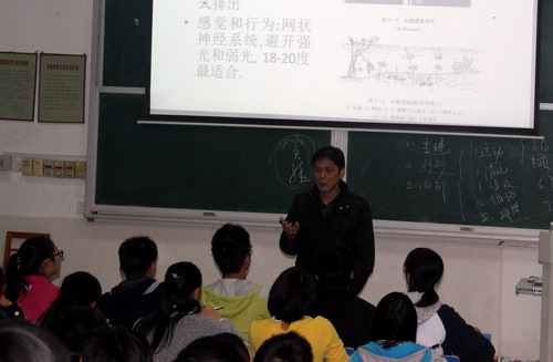 10月30日上午,杨副校长在廖院长、严书记和吴助理的陪同下,随机听取了在思贤楼阶一教室陶热老师给A1451和A1551两个班75名同学讲授的《普通生物学》课程。课堂上,陶热老师以代表性动物为例,总结了腔肠动物门的特征,讲解了腔肠动物的分类;讲解过程中,陶热老师时而穿插相关知识点,时而启发同学思考问题,语言流利生动,互动效果甚好。杨耀防副校长在课后与陶老师进行了交流,并对陶老师这堂课进行了点评,他特别赞赏了陶热老师授课与学生的互动性和启发性,也对学生提出祝愿,祝学生学习愉快,且希望学生今后能带着批判提问的态度去学习。