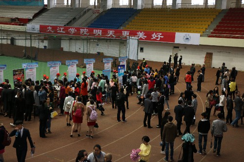 11月7日上午,旅游与国土资源学院2016届毕业生专场招聘会在田径馆馆隆重举行。40余家企事业单位前来招人纳贤,来自我校各个学院和兄弟学校的近千余名毕业生参加了招聘会,学生应聘场面十分火爆。九江电视台等多家媒体对招聘会进行了现场采访报道。