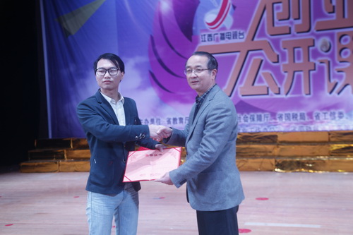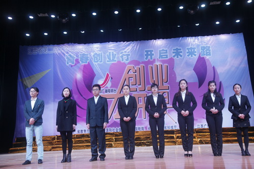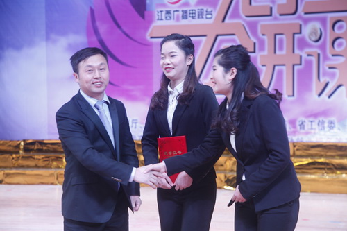 11月27日下午,以“青春创业行、开启未来路”为主题的江西省第二届大学生创业公开课在我校大礼堂举行专场,校长甘筱青、副校长陶春元、省广播电视台综合新闻频率总监罗春瑜、省就业办副主任贾桂业、市国税局政策法规科副科长田绍华出席,全校900余名教师和学生代表观看了此次公开课。此项活动由江西省教育厅、江西省人力资源和社会保障厅、江西省国税局、江西省工信委、江西省科技厅、江西省工商联、江西广播电视台联合主办,进行了现场录像和全程视频直播。