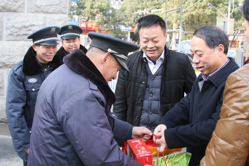 2月6日上午,校长甘筱青、副校长杨焱林在校工会、保卫处、后勤管理处等部门负责人的陪同下,先后来到主校区、浔东校区、庐峰校区和八里湖校区,看望慰问节日期间仍坚守岗位的保卫、水电等部门工作人员。