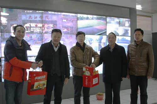 在浔东校区和庐峰校区,甘筱青校长向坚守岗位保卫、水电等部门工作人员表示了慰问,并送上节日慰问品。在附属医院,甘校长听取了医院负责人关于工程建设进度的汇报,肯定了附属医院为方便病人,改善就医体验,创造温馨、舒适、高雅就医环境所做的尝试和努力。他请附属医院负责人代向广大医务工作者表示节日的问候和祝福,祝愿新的门诊大楼早日完工,为九江人民和广大师生健康保驾护航。
