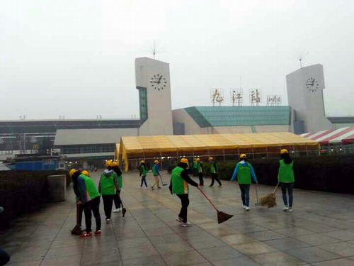 同时,乐翼服务队的志愿者们在火车站开展了学雷锋志愿活动。他们在火车站广场清理垃圾,在候车室免费提供茶水,为来往的旅客提供热情服务,让每一位旅客感受到九江火车站和志愿者带来的温暖。而化环学院的志愿者们经过2个小时的长途跋涉,到达了目的地——鄱阳湖之畔。志愿者们分组分区域去进行环保宣传活动。土建学院的志愿者们在“雷锋日”里开展了志愿者敬老院活动,给老人们送去一股春风,递去一份温暖。他们帮忙打扫卫生,他们细心搀扶老人,他们给老人们表演节目唱一首首温情的歌曲。