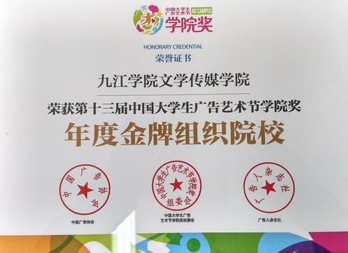 日前,从第十三届中国大学生广告艺术节学院奖秋季赛评审委员会传来好消息,经过严格的评审流程,文传学院选送的619件作品共有63件获奖,涉及影视广告、广告文案、手机摄影等多个领域,并且由于组织得力,文传学院荣获“年度金牌组织院校”奖。