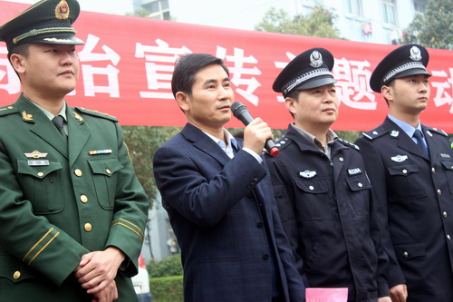 魏书记在活动启动仪式上做了动员讲话。他指出,举办综治工作主题宣传活动,旨在广泛动员师生积极参与校园综合治理,在校园营造“综治工作人人有责,和谐校园人人共享”的浓厚氛围,进而聚全校之力,共同推进平安校园建设。近年来,学校在上级综治委的具体指导下,全校师生员工共同参与、齐抓共管,全面落实社会治安综合治理各项措施,大力推进校园综合治理工作,基本实现了学校提出的“三一三就”的工作目标,确保了校园的安全稳定,为学校的各项事业的发展提供了坚定的保障。魏书记强调,综治工作是一项长期性工作,只有进行时,没有完成时。今后,我们要继续在加强法制宣传和教育工作、加强不稳定因素和矛盾纠纷的排查调处、加强安全防范工作、大力提倡群防群治等四个方面不懈努力,切实携起手来,齐抓共管,用大家的智慧和努力创建平安校园,建设和谐校园。