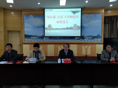 仪式上,教务处副处长许礼生宣读了《九江学院关于表彰“‘万心蕙-王霈’十佳师范生”获得者的决定》,外国语学院简腾芳同学及理学院程长晓同学作为获奖学生代表发言。