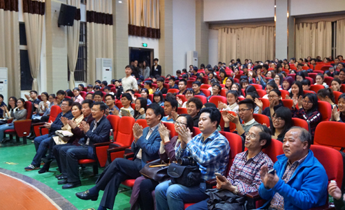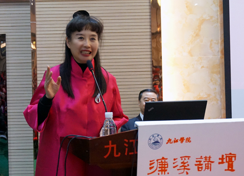 4月11日晚,京剧名家孙萍、叶金森做客我校第145期濂溪讲坛,在香远楼三楼报告厅为我校师生带来了题为“京剧艺术的台上与台下——国粹的传承与发展”的精彩讲座。校党委书记郑翔,副校长杨耀防及党委宣传部、学生处、校团委、艺术学院、外语学院、继续教育学院等部门负责人与广大师生们一起聆听了讲座。讲座由副校长杨耀防主持。