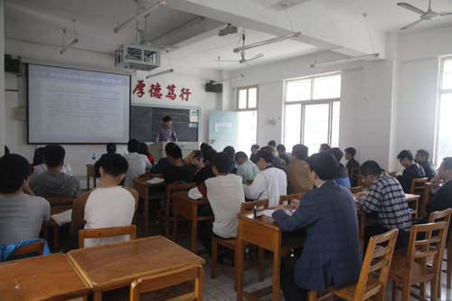 在听完了占昌朝博士的授课后,郑翔书记进行了点评。他肯定了占博士的授课效果,称赞占博士在授课时,将中文讲述与外语板书结合在一起,对帮助大家明确讲授的重点、难点起到了很好的作用。