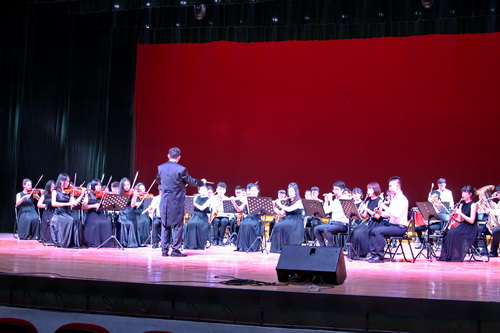 下午,校党委书记郑翔陪同吴雨先生一行在主校区大礼堂观看了艺术学院音乐舞蹈表演,并与全体演员合影。随后,吴雨先生一行在副校长杨焱林的陪同下参观了艺术学院新建工程。