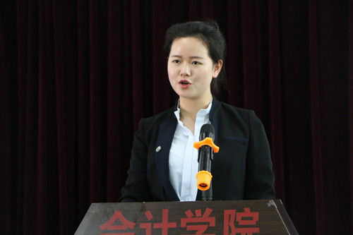仪式上,学生处处长刘平就2016年学生骨干培训班作了具体安排。与会领导为“大骨班”四个班级进行了授旗。学员代表“竞知班”班长会计学院田妙龄同学作了表态性发言。