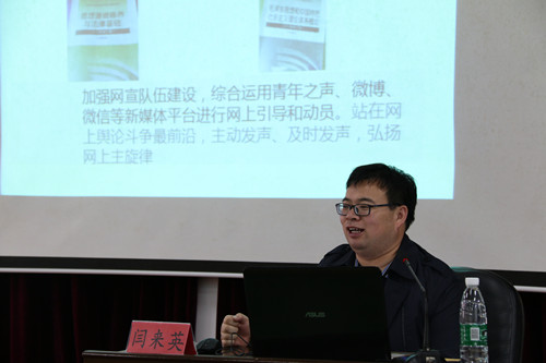 随后,校团委书记闫来英为全体学员授第一课。他做了题为“解读《加强和改进党的群团工作的意见》努力开创我校共青团工作新局面”的辅导报告。
