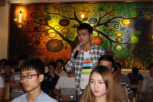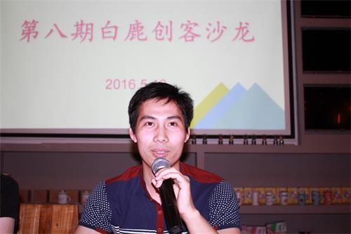 黄歆分享了自己从打工到做项目再到成立公司的经验:第一次合伙创办企业,效益不好,股东撤资,被迫想方法转型,成立手机方案公司,通过自己跑销售、与别人合作、生产外包等,赢得了资本;大环境变化,手机巨头公司使得小公司生存空间小,主动想方法转型,现从事手机电子元器件IC的贸易行业。面对主持人关于“创业中如何积累人脉关系?”的提问,黄学长以自己的老师为例,从“以诚待人、相互扶持、在利益方面要与合作人等划分清楚,结合自身特点,适度把握”等方面进行了回答了,并告诫学弟学妹们在校时多学习、多思考、多锻炼,在适应中求发展。