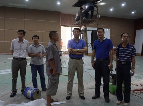 在返回主校区后,郑书记又来到主校区大礼堂施工现场检查工作,询问了工程进展情况,要求相关部门加强配合,加快工程进度,确保工程质量,尽快完成礼堂维修工作。随后,郑书记又到已经装修完毕的濂溪酒店进行察看。
