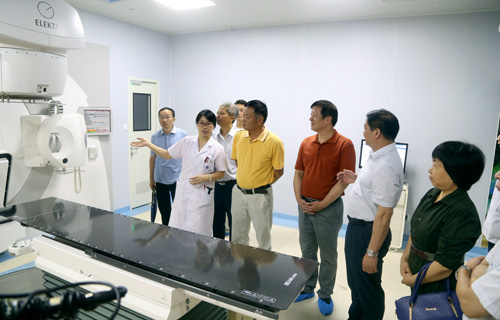 在住院部一楼大厅,两院领导共同为达成技术协作医院合作揭牌。随后,一行人到放疗科和治疗室进行参观,了解临床医学院/附属医院直线加速器以及放疗科建设情况。