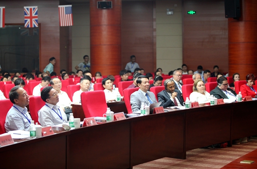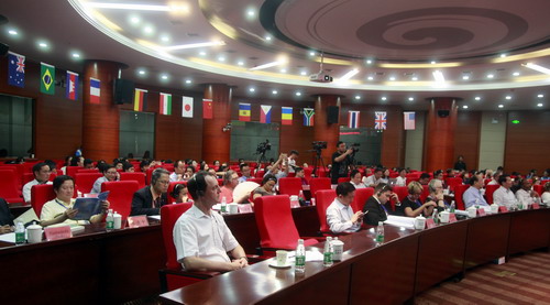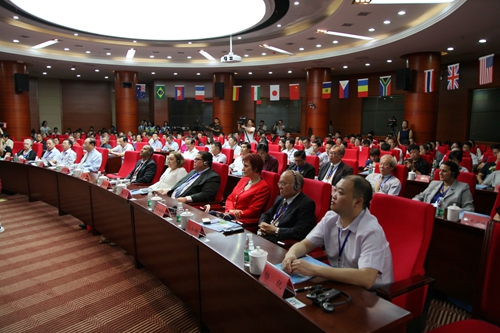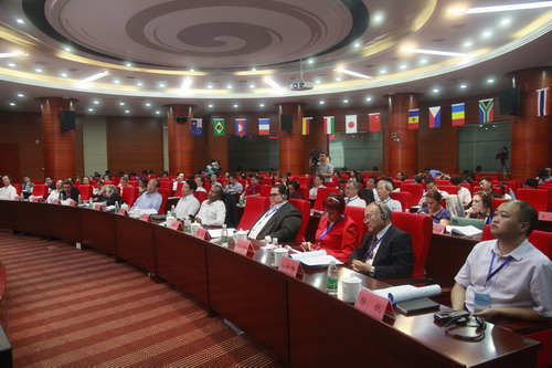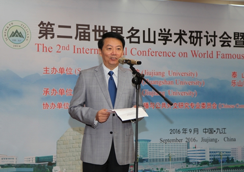 第二届世界名山学术研讨会暨高校公共外交论坛由九江学院、泰山学院、黄山学院、乐山师范学院主办,九江学院承办,中国全球传播与公共外交研究专业委员会协办。本届大会将围绕“经济全球化下的世界名山旅游发展和“一带一路”背景下的高校公共外交研究”这一主题开展广泛、深入的交流与合作。应邀出席本届大会的代表有:黄山学院党委书记汪枫,江西省人大环境与资源保护委员会副主任委员甘筱青,泰山学院副校长殷敏,黄山学院副校长胡善风,乐山师范学院校长代表杨悦,菲律宾圣名大学副校长那罗,菲律宾圣名大学副校长文森特,摩尔多瓦自由国际大学副校长克里斯蒂娜,以及来自澳大利亚、美国、巴西、伊朗、南非、德国、菲律宾、柬埔寨、日本、泰国、法国、罗马尼亚、摩尔多瓦等五大洲15个国家和地区世界名山所在地高校的专家学者,国内公共外交界的领导和学者。中国上海、浙江、广东、北京、湖北部分高校及相关科研机构专家、学者60余人也应邀参加大会。开幕式由九江学院党委书记郑翔主持。