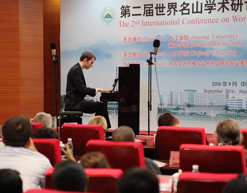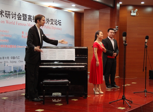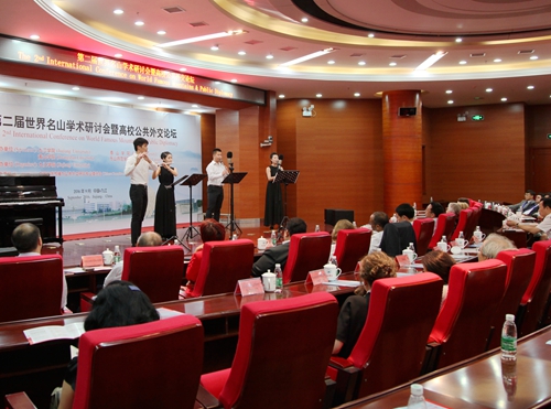 9月19日晚,我校艺术学院师生在逸夫楼图书馆学术报告厅举办小型音乐会。出席第二届世界名山学术研讨会暨高校共公外交论坛的中外嘉宾、媒体记者,我校党委书记郑翔、副校长杨耀防等校领导,以及相关部门负责人和部分师生一起欣赏了艺术学院师生们精心准备的音乐会节目。
