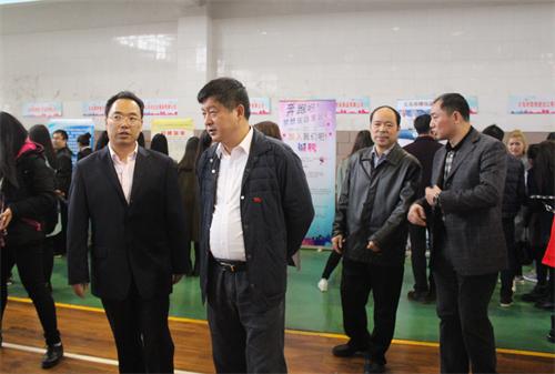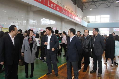 招聘会现场,副校长纪岗昌、夏启国在校招生就业处、工会负责人及外国语学院、电子商务学院党政负责人的陪同下亲临招聘会现场指导工作,并与毕业生代表、企业代表亲切交谈,了解用人单位招聘情况和毕业生应聘情况。