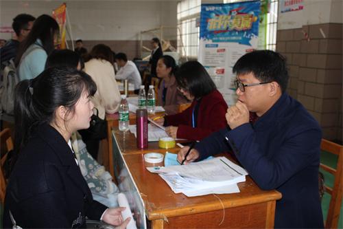 招聘会于上午9:00正式开始,现场气氛良好,秩序井然。每位来应聘的毕业生都带着准备好的简历,在企业展位前详细了解招聘岗位的具体情况,积极地投递简历并与招聘人员交流。在招聘现场,有的用人单位制作精美宣传海报、有的在现场播放企业宣传片、有的则主动向应聘学生介绍企业情况。此次招聘会有多家企业是外国语学院和电子商务学院长期合作单位,他们对九江学院的毕业生非常满意,我校毕业生在专业知识、职业技能、思想道德品质等方面均得到了用人单位的认可,公司负责人表示,希望与九江学院建立长期稳定的校企合作关系。