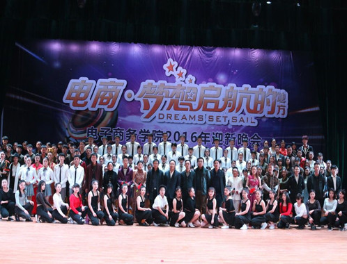 11月18日晚,电子商务学院在大礼堂举行2016年迎新晚会。副校长纪岗昌、陶春元、夏启国到场观看了晚会。学工处处长刘平,校团委副书记赵宇剑、电子商务学院党政领导、毕业生就业招聘会企业代表及电子商务学院全体师生观看了演出。