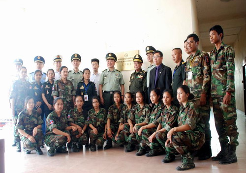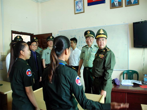 中国人民解放军南部战区司令员王教成将军视察柬埔寨金边警备旅孔子课堂