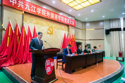 11月23日下午,中共九江学院外国语学院党员大会在香远楼三楼学术报告厅隆重召开。校党委书记郑翔同志出席会议并讲话,校党委组织人事部部长查振华出席会议;外国语学院学院全体师生党员共计96人参加了会议;学院2位民主党派人士应邀列席了大会。大会听取并审议了外国语学院党委工作报告;选举产生了外国语学院新一届党委委员。大会由外国语学院院长韩琨同志主持。