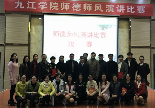 根据《九江学院师德师风建设专项教育活动方案》(九院字〔2016〕115号)的文件精神,结合“三严三实”、“两学一做”主题教育活动的要求,学校决定在全校教师中开展师德师风演讲比赛活动,并于11月30日下午在香远楼报告厅举行决赛。校纪委书记魏立平、校工会主席金葆金、教务处处长马明亮、教务处副处长张伏龙、校工会副主席支少华同各二级学院观摩老师代表、学生代表一起出席了本次活动,本次比赛的评委大部分是由近三年师德师风标兵组成。校工会主席金葆金主持比赛。
