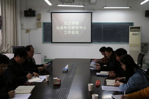 2月17日下午,九江学院2017年公共外交研究中心工作会议在国际交流学院会议室召开,副校长、公共外交研究中心主任杨耀防出席会议,兼职研究员20余人参加了会议。会议由国际交流学院负责人、公共外交研究中心副主任帅式毅主持。