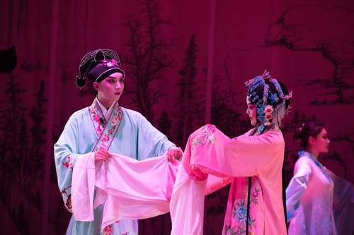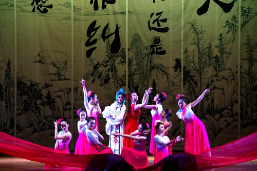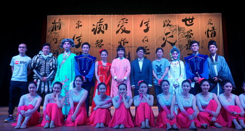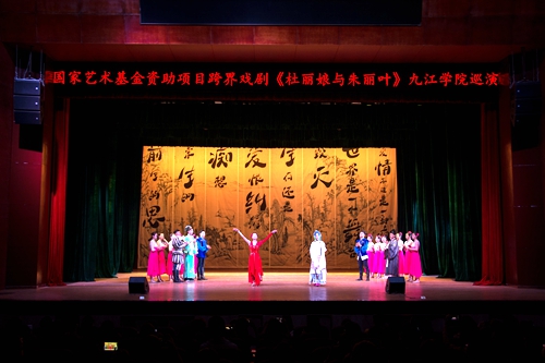 为弘扬社会主义核心价值观,充分发挥戏剧艺术在培养道德情操、提高审美修养方面的特殊功能和潜移默化的育人效果。受学校邀请,由北京外国语大学艺术研究院创作演出的跨界戏剧《杜丽娘与朱丽叶》于5月7日来到我校做交流演出,两场演出获得圆满成功。