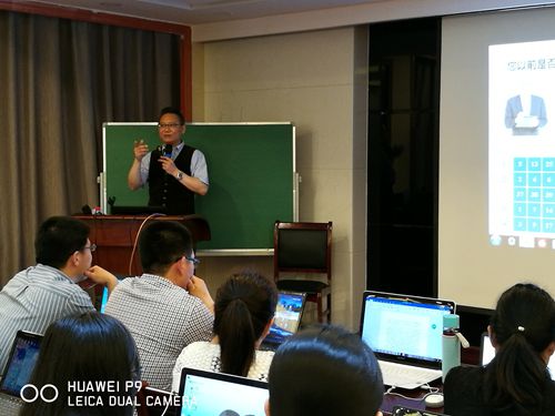 培训中,赵国栋教授以“云课堂教学法”为主题,通过生动的语言向大家阐述了互联网技术对高校教学带来的变革,混合式学习、翻转课堂、微课、慕课、私播课、云课堂已逐渐进入到高校教学中,并通过对斯坦福大学、北京大学、中南财大、北京交大等国内外高校“微课”、“慕课”典型案例的展示,深入分析了新型课堂对传统教学模式的冲击和影响。接着赵教授介绍了微课的概念、其产生与发展背景、技术特点、微课制作的硬件工具及常用软件、微课设计模型、微课与翻转课堂的关系等,让大家深刻理解到制作好微课是通往制作慕课与私播课的必经之路。最后赵教授重点向各位学员展示了一套基于模板和套件来设计课件的快速化制作技术,即“快课技术”,并通过培训软件一步步向在座学员演示了如何制作动画配音式微课、主持式微课及交互式微课。各参训学员通过对Adobe Premiere、Easy Sketch Pro等软件的运用,在赵老师的指导下现场进行了实操练习,自己动手制作微课。