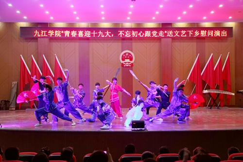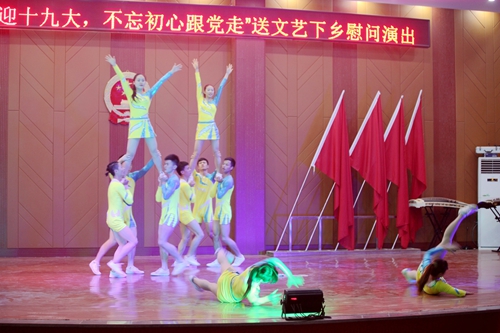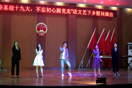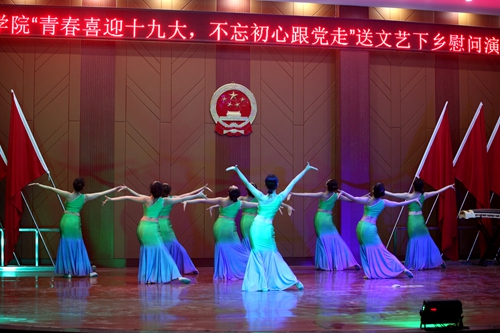 2017年5月5日晚,为吹响脱贫攻坚的集结号,由组织人事部、学生处、校团委、艺术学院共同举办、官莲乡协办的“青春喜迎十九大,不忘初心永跟党”送文艺下乡慰问演出在官莲乡大礼堂举行。组织人事部、校团委、艺术学院负责同志及官莲乡的近500名父老乡亲观看了整台晚会。