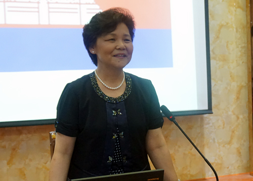 讲座开始前,张金凤大使首先对我校在柬埔寨承办的孔子学院多年来取得的成绩表示祝贺。2009年12月,正是在张金凤大使的指导和支持下,九江学院承办了柬埔寨第一所也是唯一的一所孔子学院。讲座中,张金凤大使向听众简要的回顾了柬埔寨从古代到近现代的历史变迁,围绕着重点人物西哈努克、西哈莫尼和洪森介绍了柬埔寨的发展进程。她以图片的形式向师生展示了巴戎寺、吴哥窟等柬埔寨历史文化古迹。她还通过讲述一个个亲身经历的故事,从柬埔寨历史发展、中柬传统友谊等方面分析了中柬双边关系发展历程及未来走向。讲座中,张金凤大使希望同学们要从小事做起,把每件事扎扎实实做好,为理想而奋斗,为青春而奋斗,为我国今后的外交事业贡献一份应有的力量。
