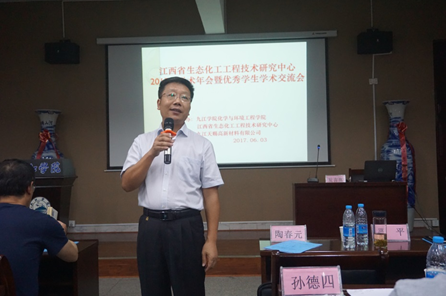 工程中心主任陶春元副校长致欢迎词,并介绍江西省生态化工工程技术研究中心发展历程,殷切希望中心老师利用省级平台多出成绩,加强与地方企业横向合作,为地方化学化工行业技术创新做出应有的贡献。