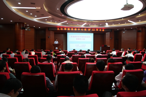 校党委书记赵伟在学习会最后总结时,就如何认真领会、消化吸收好江泰然教授的辅导报告内涵和精神实质,进一步加强作风建设,提出了三点要求:一是要强化学习教育,汲取智慧力量。党的历史包含着党的奋斗发展史、党的理论创新史、党的自身建设史等丰富内容,是党的根、党的魂,具有以史鉴今、资政育人的重要作用。要结合学校当前开展的“两学一做”学习教育活动,组织开展好纪念中国共产党建党96周年庆祝活动,加强学习党的历史,讲好党的故事,传播党的声音,从党的历史中汲取不断开拓进取的智慧与力量。二是要强化党性锤炼,提高能力素质。党和国家的事业是薪尽火传、不断发展的历史过程。大家要通过今天的学习,对照党纲党章的要求,进一步加强党性锻炼和世界观改造,对照老一辈共产党人的优秀品质和人格力量,对自己的工作重新进行审视;要认真汲取经验教训,严格遵守中央八项规定和省市有关廉政建设的各项要求;进一步强化大局意识、责任意识、担当意识,着力提高干事创业的素质和能力,以高度的责任感和使命感做好本职工作。目前,学校正处期末时期,各单位和部门要全力做好学生管理和安全稳定各项工作,确保校园和谐稳定。三是要强化责任担当,推进重点工作。今年是学校发展史上的重要一年,新一届领导班子逐步配齐到任;也是实施“十三五”规划的关键一年,申硕工作和本科教学审核评估全面启动。能否打好申硕和评估这两场硬仗,事关学校发展大局和兴衰。在座的各位都是学校中层干部,更是学校发展的中坚力量。大家要以史为鉴,以“对党忠诚、对事业负责”的态度全力做好各项准备工作,坚决打赢申硕和评估两场攻坚战,共同书写九江学院发展史上浓墨重彩的新诗篇。