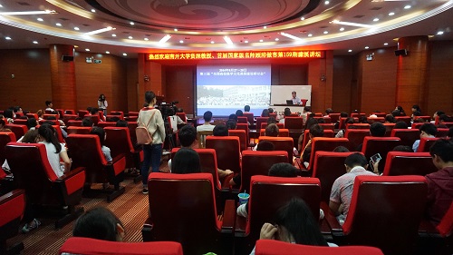6月16日下午,南开大学资深教授、首届国家级教学名师顾沛教授做客我校第159期濂溪讲坛,在逸夫图书馆报告厅为我校师生带来了主题为“感悟数学之美——从数学文化谈起”的精彩讲座。省人大环资委副主任甘筱青到场听取了讲座,讲座由副校长陈春生主持。