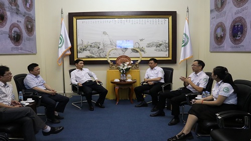 6月21日上午,由九江学院党委副书记魏立平率领的九江学院教育代表团访问了柬埔寨王家研究院孔子学院,访问团成员有九江学院旅游学院院长李松志、文学与传媒学院副院长朱全国和国际合作交流处施密特。柬埔寨王家研究院院长克洛媞达(Khlot Thyda)院士、柬埔寨王家研究院孔子学院院长谢莫尼勒(H.E.CHEA  MUNYRITH),中方院长夏修龙热情接待了魏立平副书记一行。