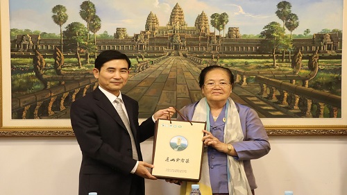 柬埔寨王家研究院院长克洛媞达(Khlot Thyda)院士在王家研究院会议厅与魏立平副书记亲切会谈。克洛媞达院士对魏立平副书记一行的到来表示热烈欢迎,她感谢九江学院对孔子学院的大力支持,她说,九江学院是孔子学院的合作单位,我们就像走亲戚一样,来往频繁,不断交流。魏立平副书记表示,九江学院与柬埔寨王家研究院是合作院校,更是好朋友,我们双方有信心把孔子学院办得更好,使之成为中柬人文交流的平台。