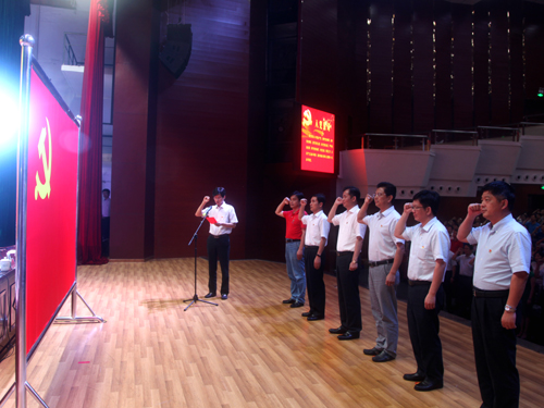 会上,全体党员面向党旗,庄严重温了入党誓词,校党委委员、副校长查振华同志领誓。
