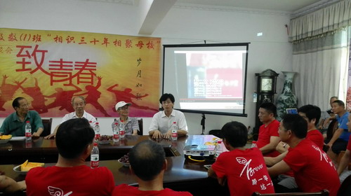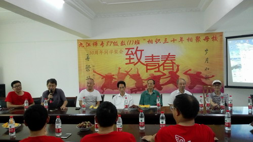 查副校长代表学校对校友们回到母校相聚表示热烈的欢迎,感谢他们对母校的关心和支持,对大家流露出深厚的同窗情、母校情深深感动,他向大家介绍了学校近年来的办学情况和今后发展规划,希望各位校友继续关心和支持母校的建设,同时祝愿各位校友家庭和睦,身体健康,工作顺利,祝同学聚会圆满成功。杨主任也向各位同学介绍了原九江师专的变革发展历程,欢迎各位校友多回母校看看。