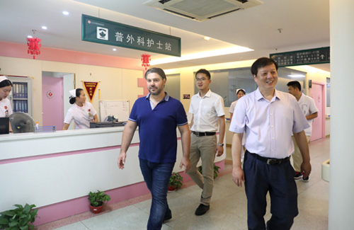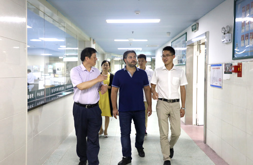 讲座结束后,在张志平院长、欧阳庆雯副院长等的陪同下,Max教授还参观了临床医学院/附属医院门诊楼、检验科、病理科、放射科、休闲吧以及普外科、妇科、产科、儿科病区等处,他对该院人性化管理给予了高度评价。